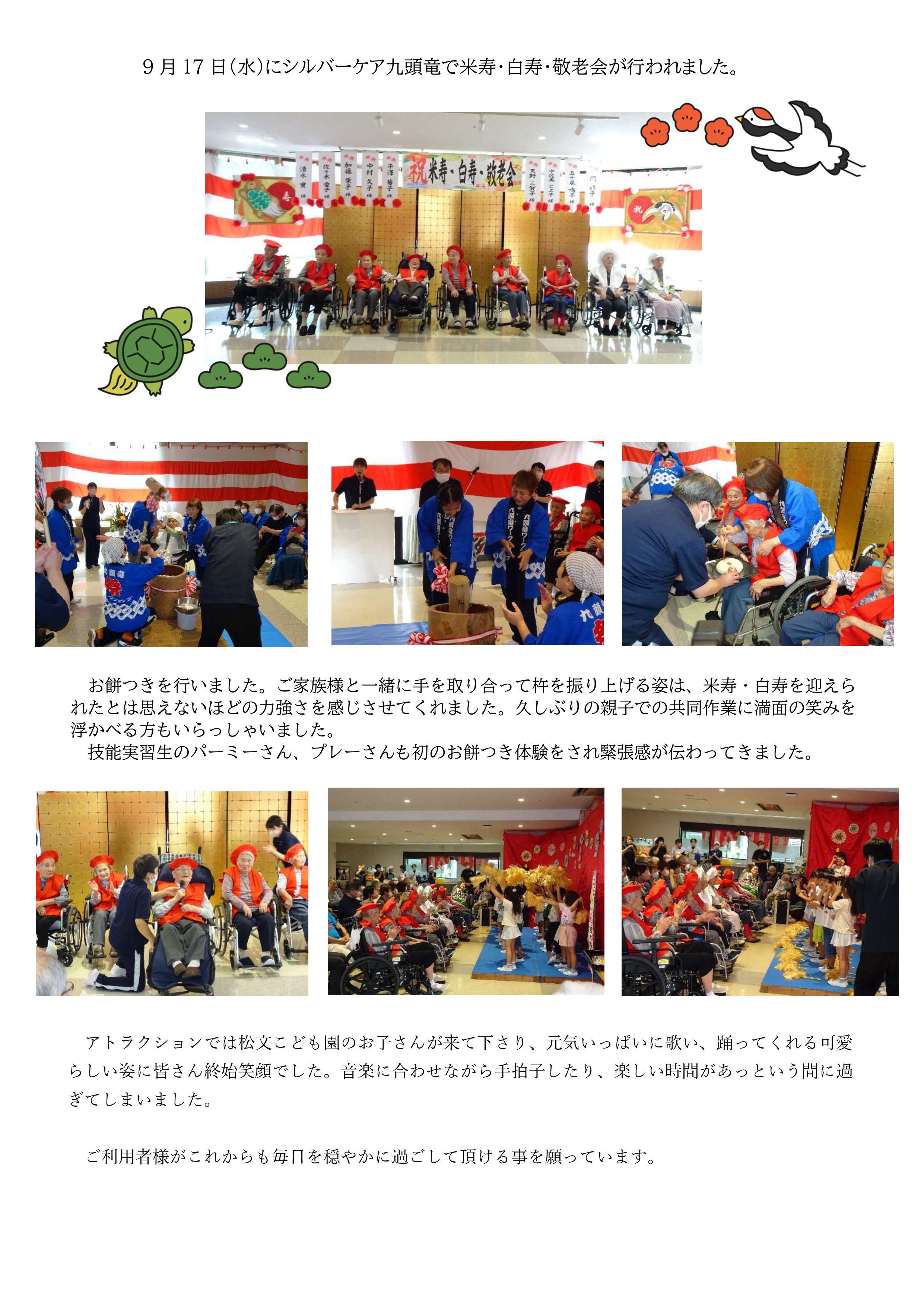 シルバーケア九頭竜にて、米寿・白寿・敬老会が開催されました。