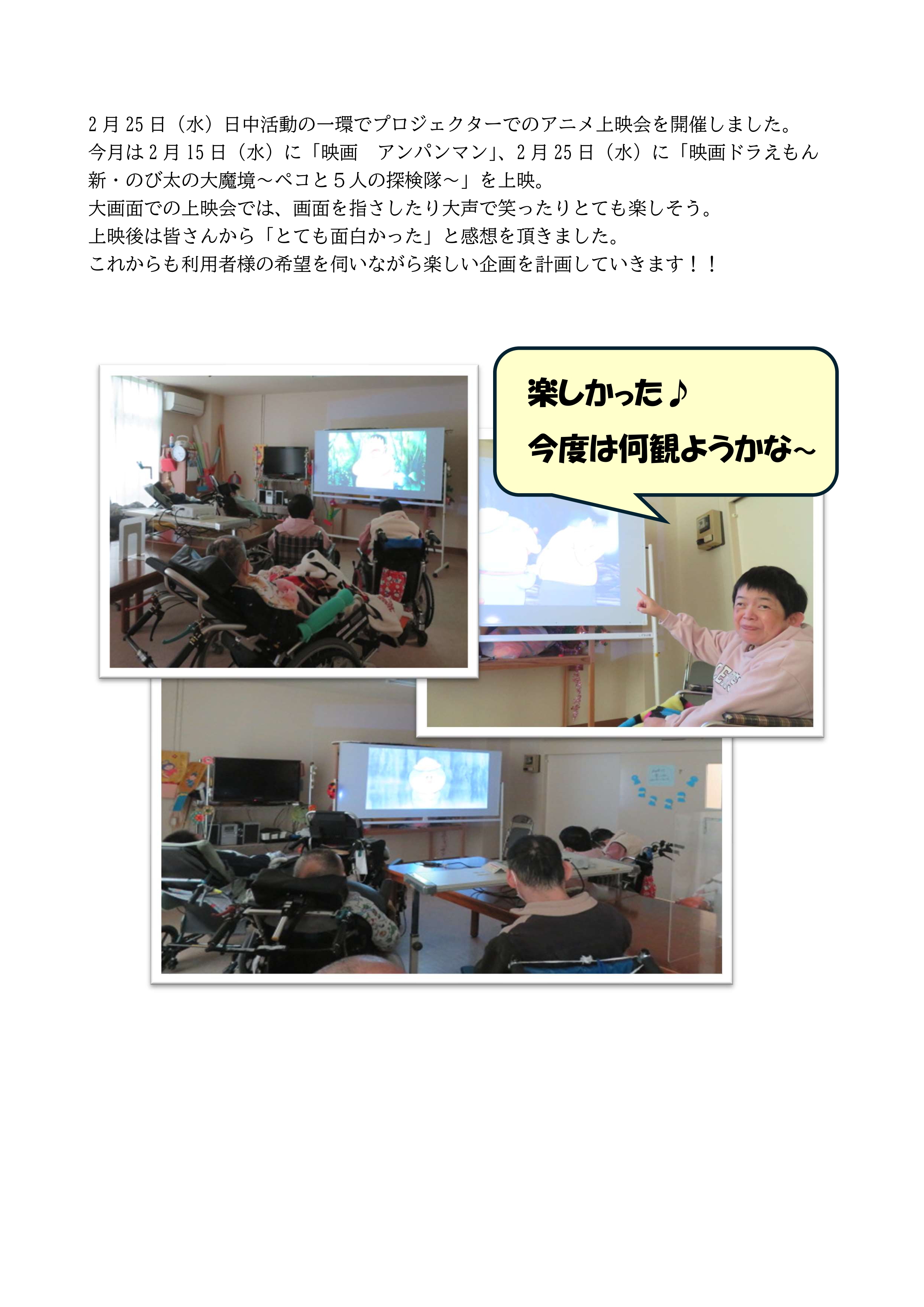 プロジェクターで映画上映会を行いました。
