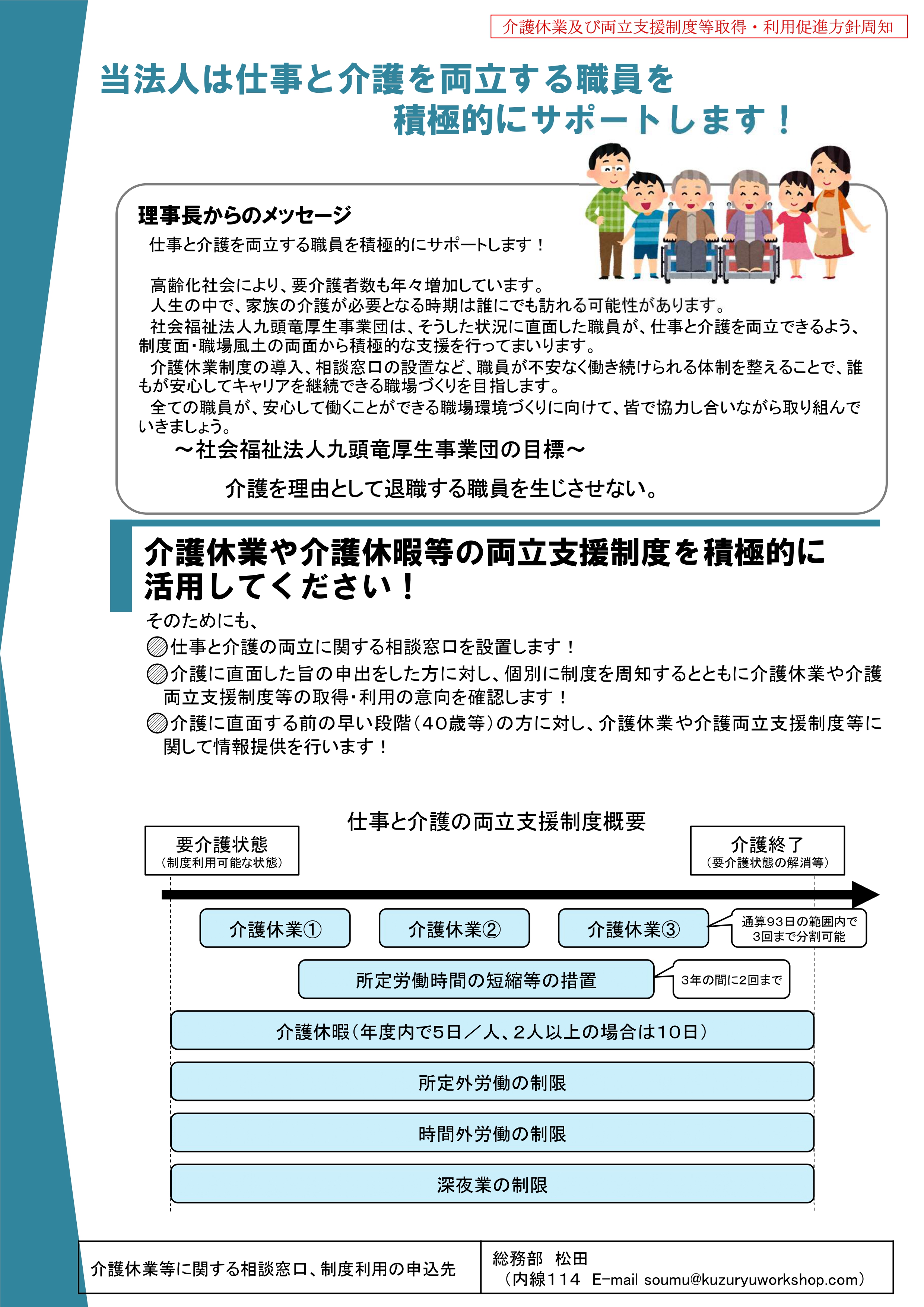 当法人は、仕事と介護を両立する職員を積極的にサポートします!