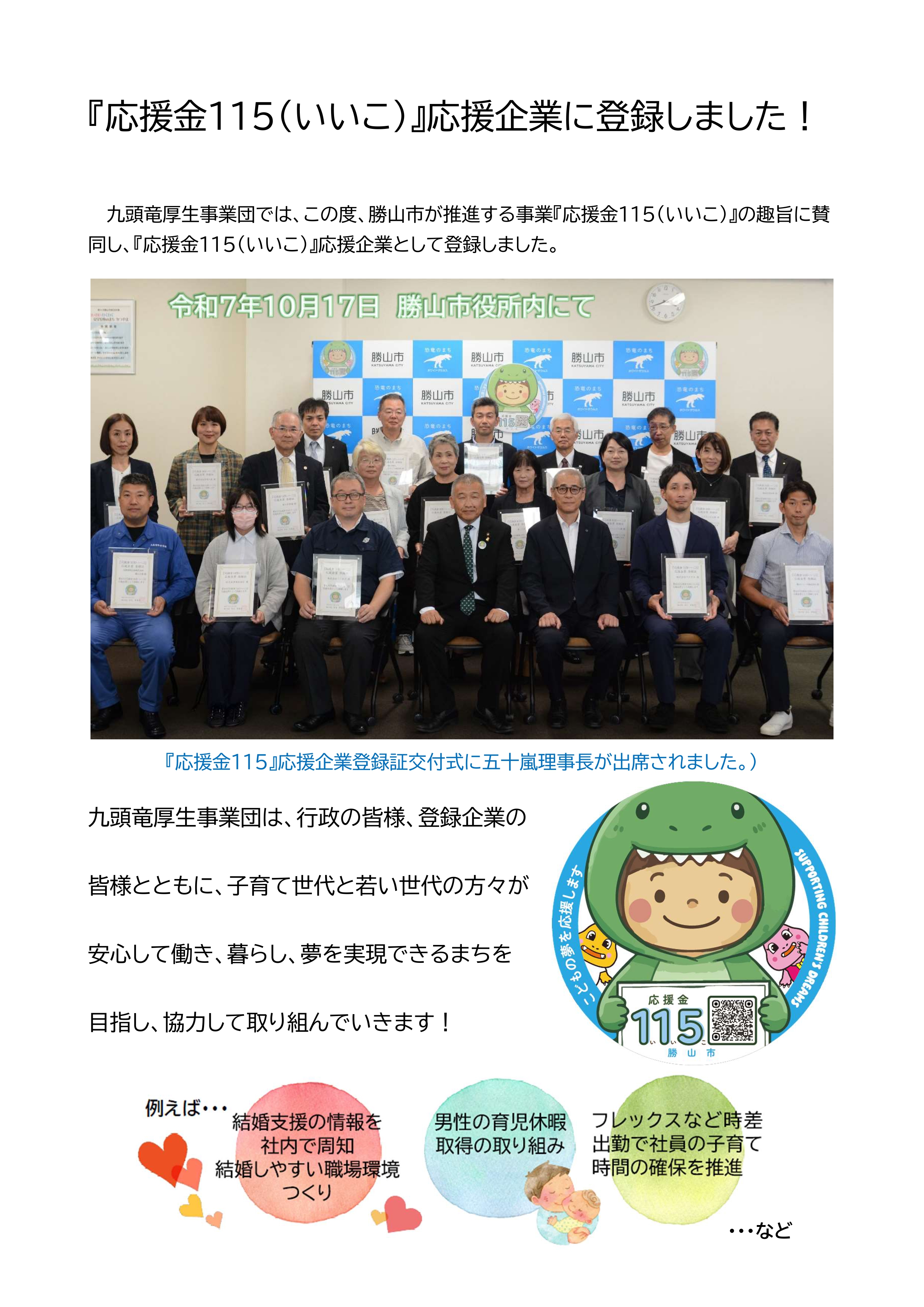 当法人は、子育て世代、若い世代を応援する『応援金115(いいこ)』 応援企業に登録いたしました。